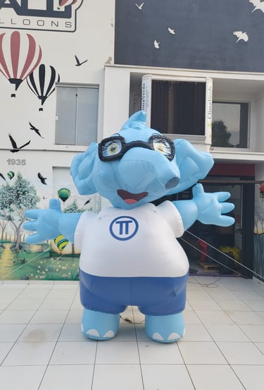 Personagens infláveis personalizados que representam a identidade da empresa.